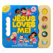 Enjoy a fun, family activity by reading and singing to 5 Bible songs! Read along to the lyrics of each familiar song and press the buttons on the wooden side panel to play sounds for your sing-along. Each button has a corresponding icon on the page to match lyrics with the melody. Pushing the interactive buttons helps toddlers and babies develop fine motor skills, while singing builds early literacy skills. Religious songs included are All Things Bright and Beautiful, Jesus Loves Me, Go Tell It on the Mountain, This Little Light of Mine, and I've Got the Joy in My Heart. This adorable sound book is perfect for Easter gifts for kids, as well as other holidays and birthdays throughout the year.