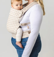 Experience the magic of Mabē with our premier design: the Monarch Carrier in houndstooth. The chic, functional design in a neutral beige/cream color combo will allow you the freedom to continue doing all that you love with your baby close. With three safe carry positions, full adjustability, breathable fabric, and beautiful design, nothing can stop you now.