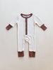 Long sleeve henley romper in a cozy waffle fabric your little ones can wear all day long.